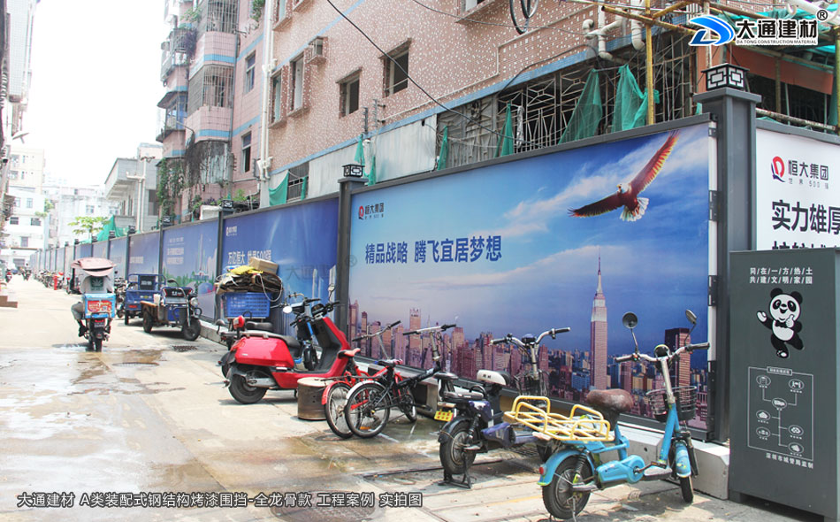 大通A類(lèi)烤漆鋼圍擋-全龍骨款應(yīng)用于深圳南山大新村城市更新項(xiàng)目-A/B/C類(lèi)圍擋-深圳市大通建材有限公司鋼圍擋生產(chǎn)定制廠(chǎng)家
