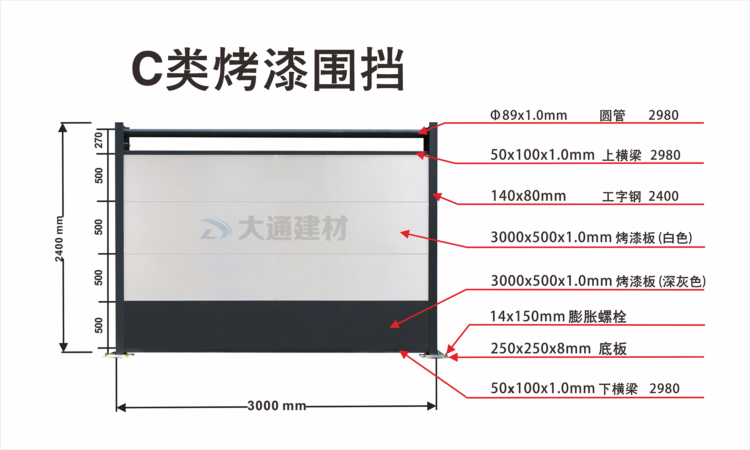 深圳鋼圍擋工程-C類烤漆圍擋新型圍擋-A/B/C類圍擋-深圳市大通建材有限公司鋼圍擋生產定制廠家