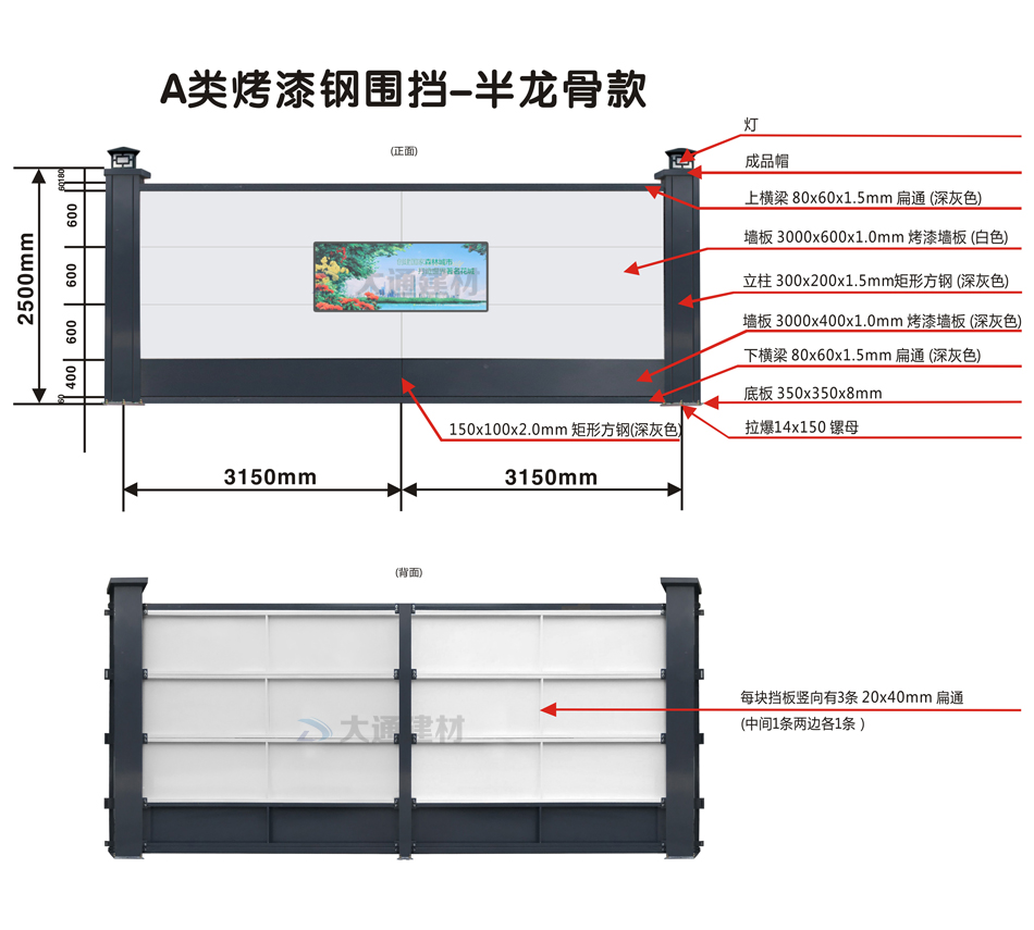 A類烤漆鋼圍擋 半龍骨款-深圳圍擋建筑工地工程-A/B/C類圍擋-深圳市大通建材有限公司鋼圍擋生產(chǎn)定制廠家