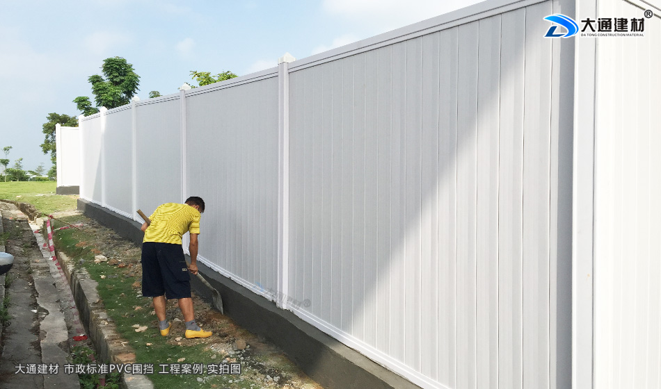 大通建材pvc圍擋是一款裝配式圍擋,安裝運用快捷,材料具有可安裝、可拆卸、可重復使用的優點,被施工現場大量使用,以降低施工現場臨時圍擋設施的造價。