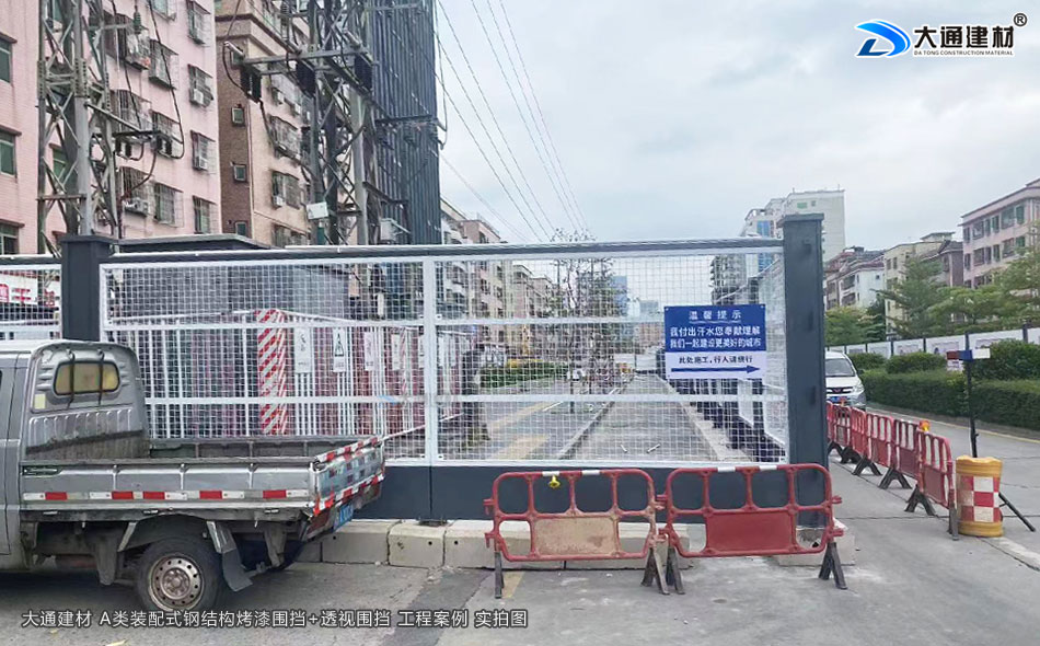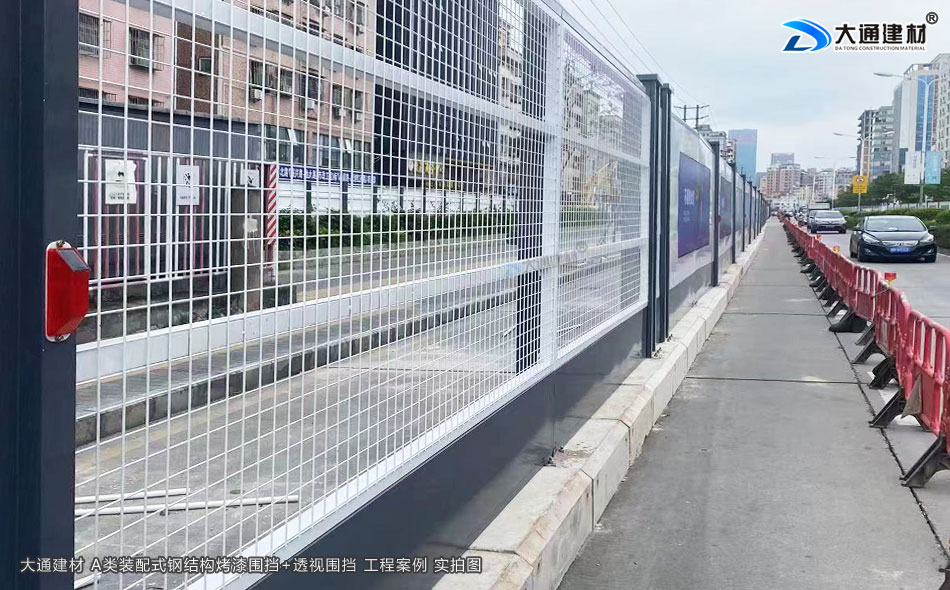 大通工地透視圍擋+A類鋼結構烤漆圍擋 深圳光明區工程案例-通透式圍擋-深圳市大通建材有限公司鋼圍擋生產定制廠家