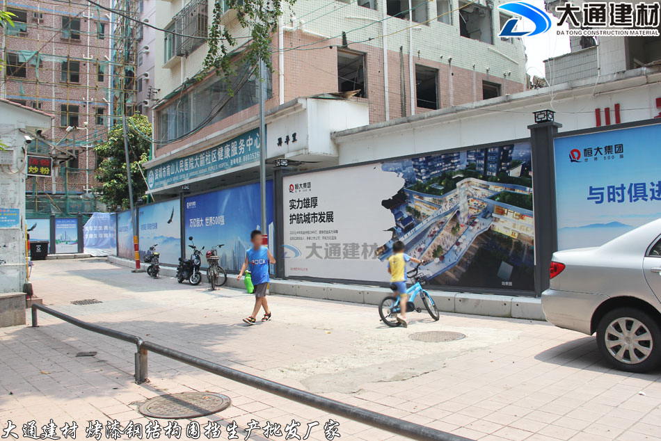 深圳標準化圍擋-深圳南山大新社區(qū)改造工程施工圍擋安裝案例 都是由大通建材公司人員實拍的圍擋圖片