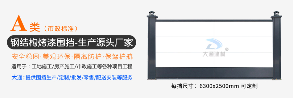深圳市大通建材有限公司,大格局、通天下! 新型裝配式鋼結(jié)構(gòu)圍擋A款/B款/C款,PVC圍擋,圍擋基礎(chǔ),工地大門等產(chǎn)品生產(chǎn)廠家電話13826562448