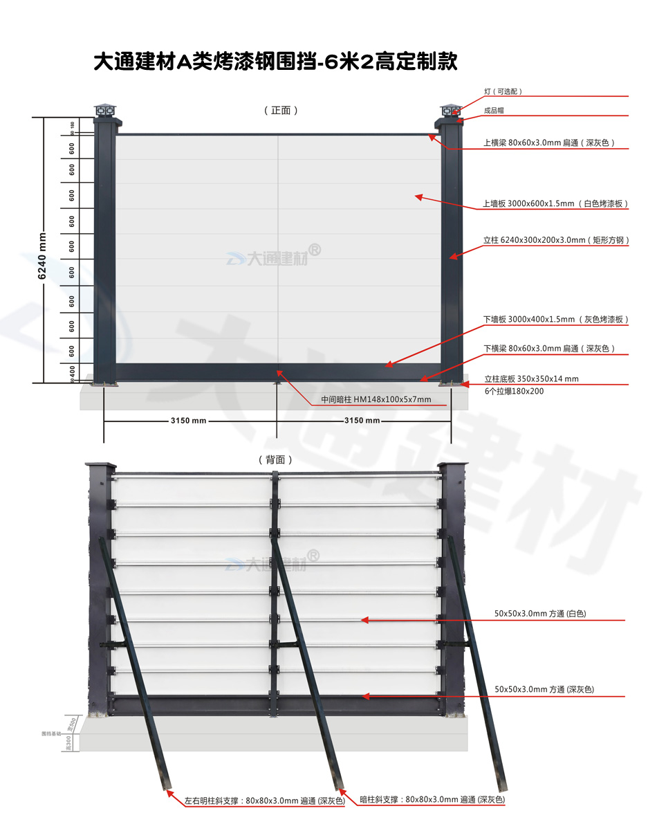深圳大通建材生產(chǎn)的A類裝配式烤漆鋼圍擋全龍骨6米高定制款 適用于各種項目工程:如市政工程建設(shè)施工、房地產(chǎn)項目建設(shè)施工、地鐵修建項目施工、管網(wǎng)改造、小區(qū)改造、城市建設(shè)、道路修建施工等工程修施工外圍使用