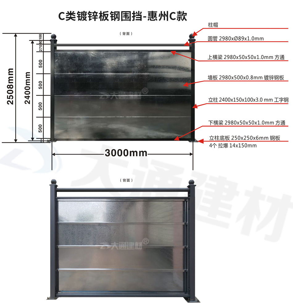 深圳大通建材 鍍鋅板圍擋-惠州C款 安裝說明