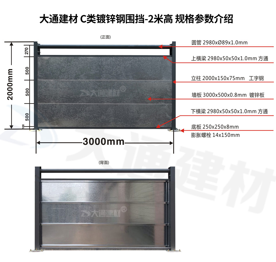 此參數只做為“大通 C類鋼結構圍擋-鍍鋅款”的參考,更詳細的規格與價格 請咨詢:13826562448